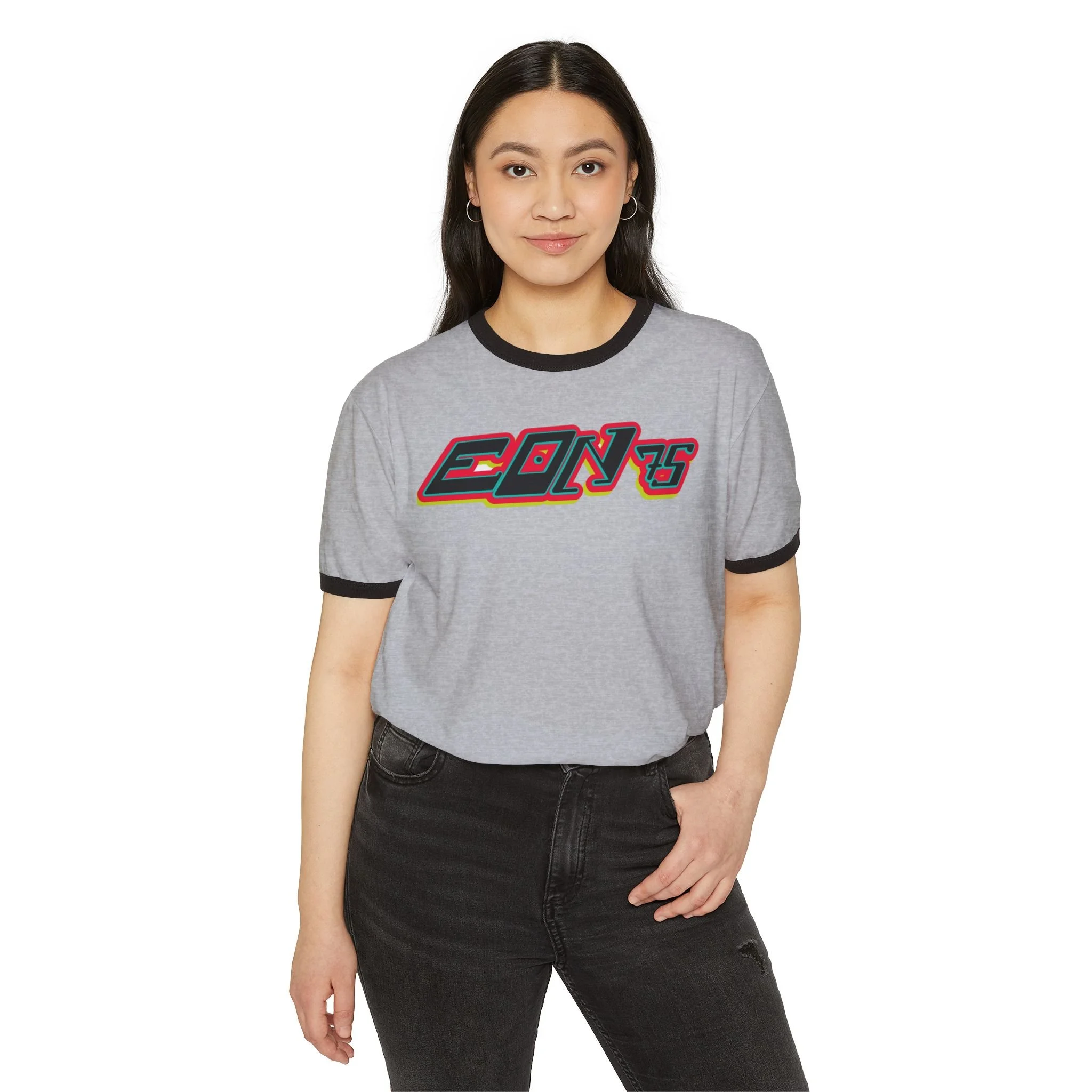 This retro-inspired ringer tee brings warm, wearable art to everyday life. Lightweight and softly textured, it drapes easy on the shoulders and carries a bold, colorful graphic across the chest with a matching, imaginative illustration on the back. The contrasting collar and sleeve bands give it a vintage edge, while the classic fit and tear-away label keep comfort front and center. Wear it to small shows, weekend strolls, or creative meetups — it feels like a friendly, familiar piece that nudges you toward moments of color and curiosity.